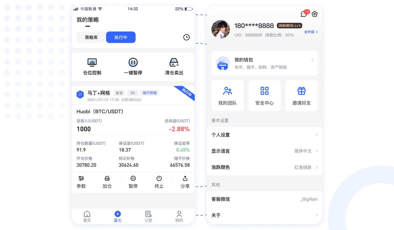 量化交易機(jī)解決方案:系統(tǒng)中設(shè)定交易策略,讓系統(tǒng)機(jī)器人自動執(zhí)行交易的一種方式,通過檢測行情走勢各種指標(biāo),判斷買入、賣出時機(jī),讓用戶盈利最大化。